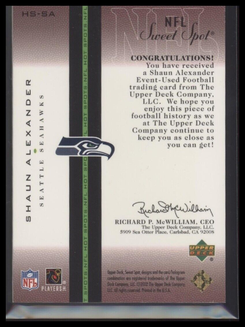 2002 Upper Deck Sweet Spot #HS-SA Shaun Alexander Hot Spots Football