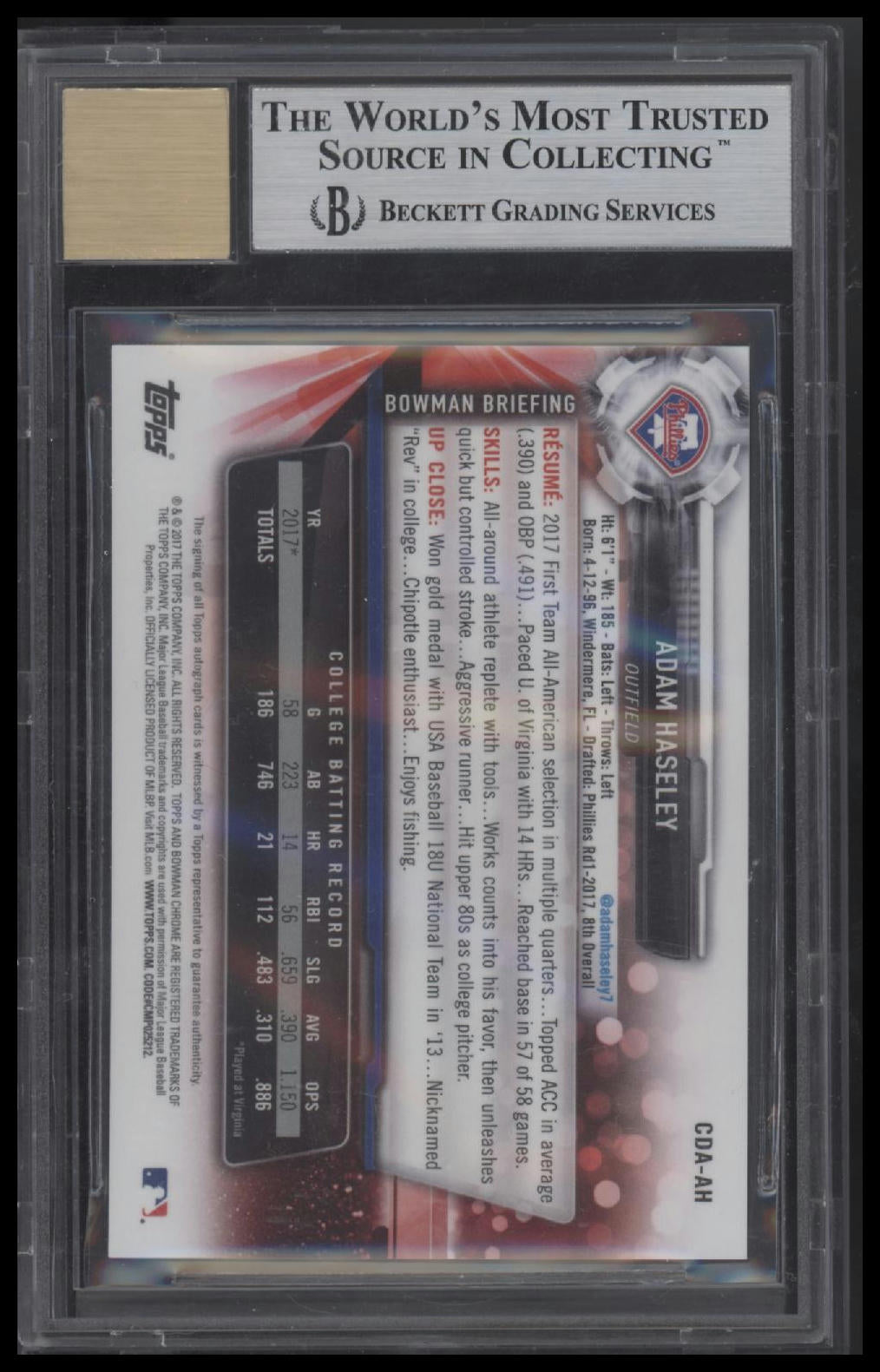 2017 Bowman Chrome Draft Autographs #CDAAH Adam Haseley BGS 9.0