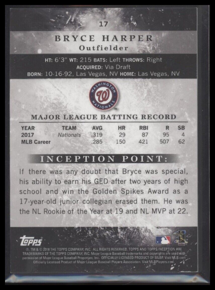 Decrease quantity for 2018 Topps Inception #17 Bryce Harper
