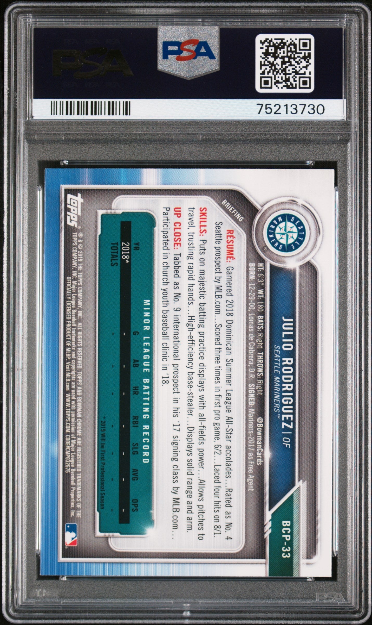 2019 Bowman Prospects Chrome #33 Julio Rodriguez Prospects Chrome PSA 10