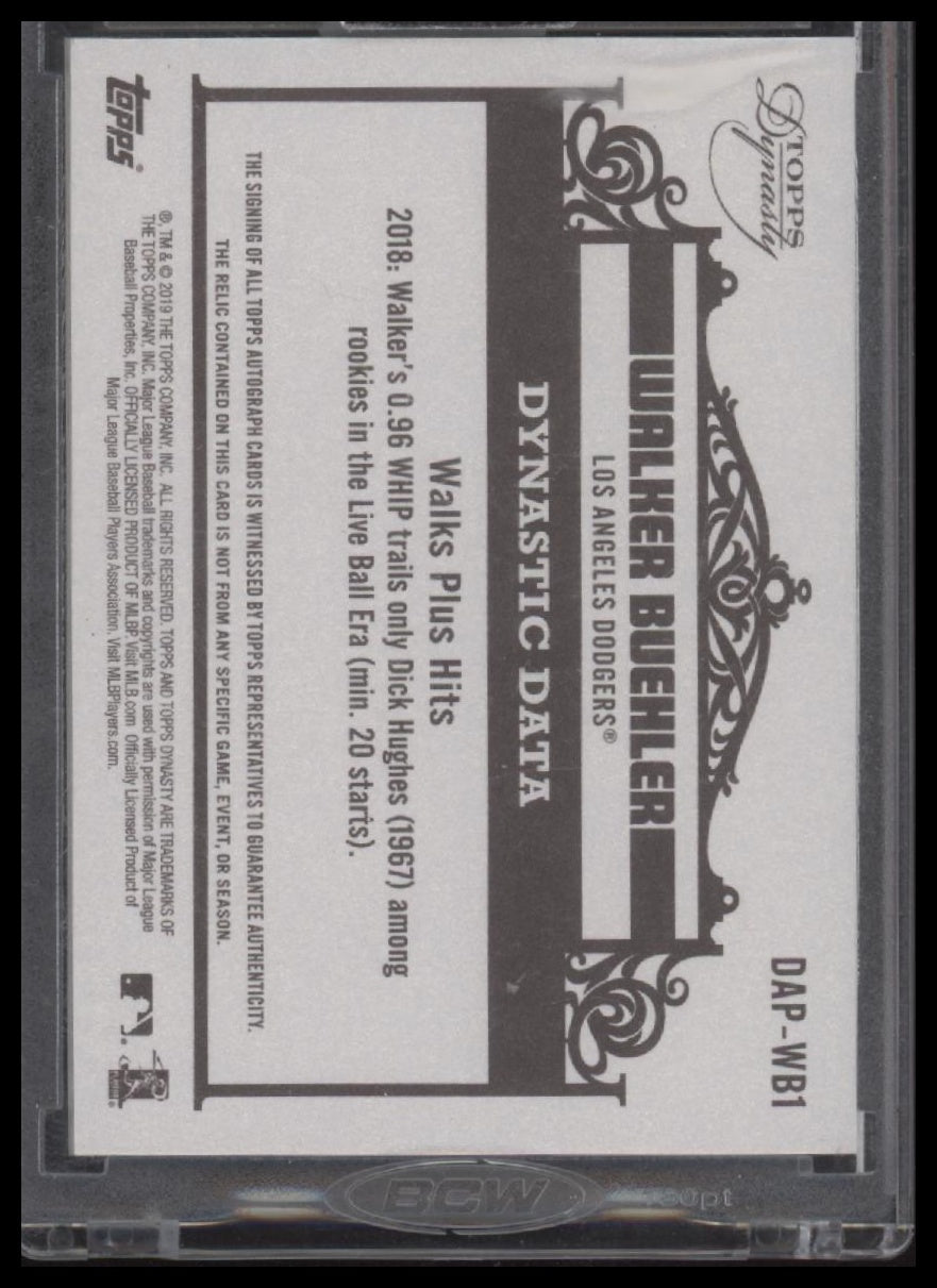 2019 Topps Dynasty - Autographed Patches #DAP-WB Walker Buehler #/10