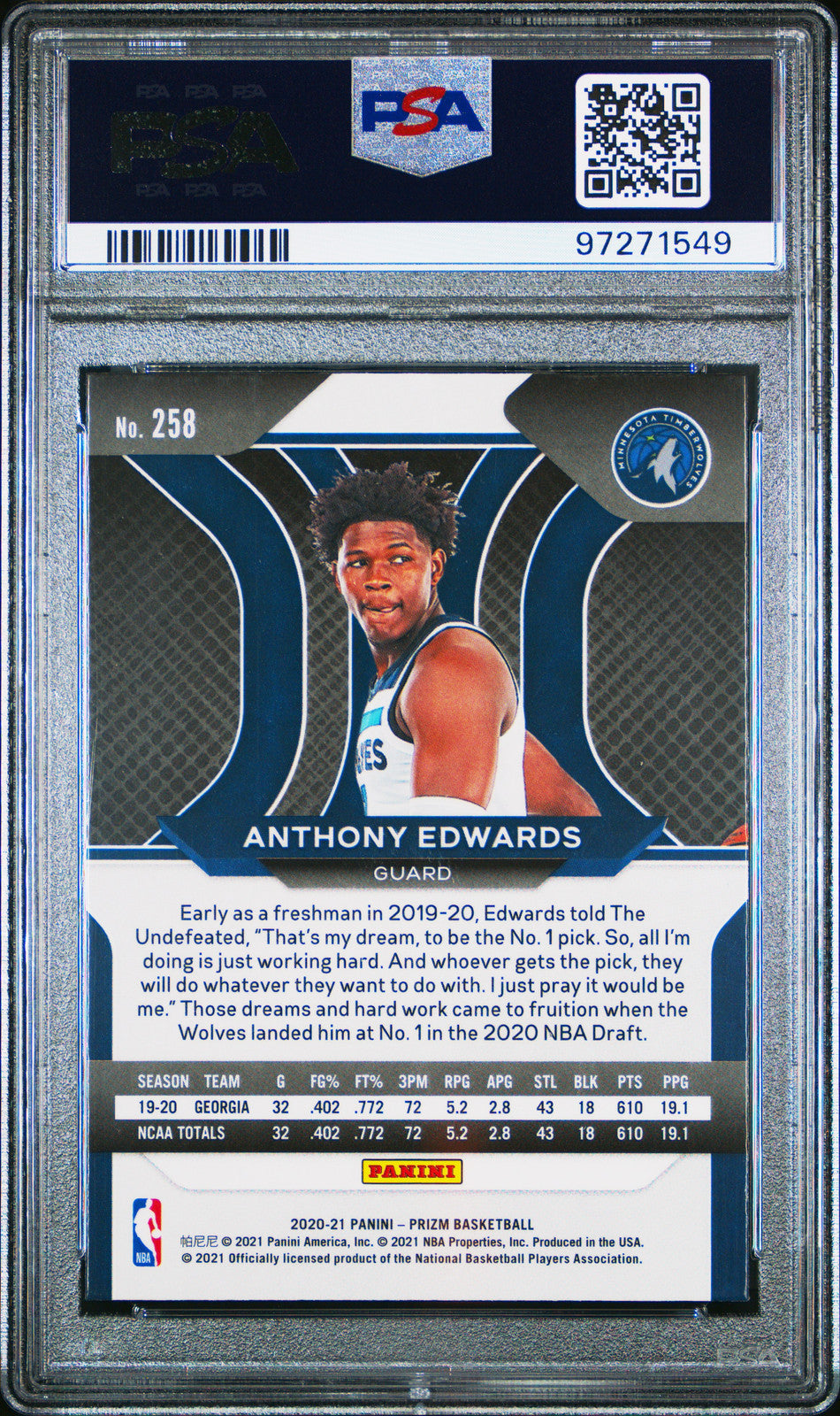 2020 Panini Prizm #258 Anthony Edwards PSA 9