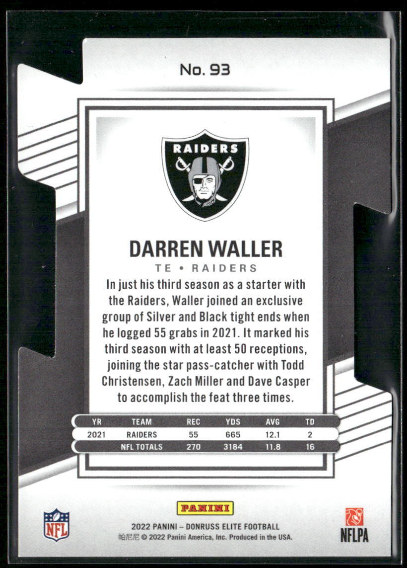 2022 Donruss Elite #93 Darren Waller Aspirations Die Cut