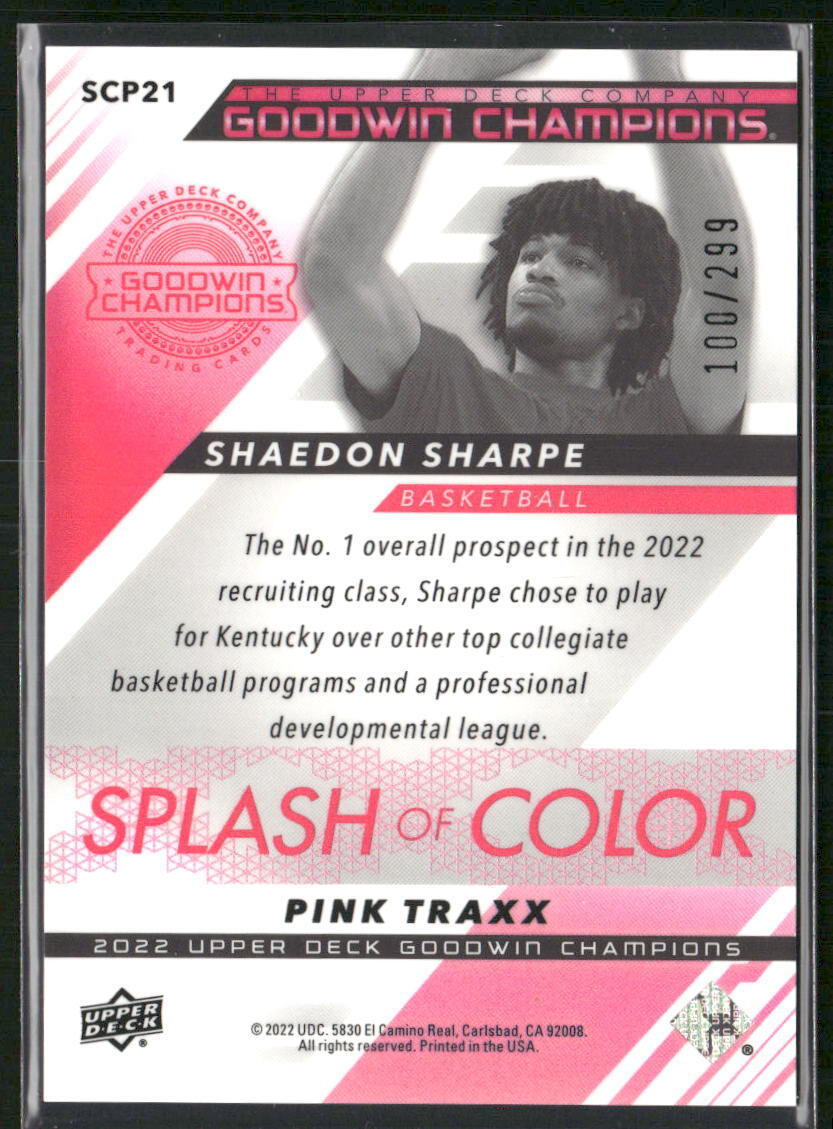 2022 Upper Deck Goodwin Champions #SCP21 Shaedon Sharpe Splash of Color Platinum Pink Traxx