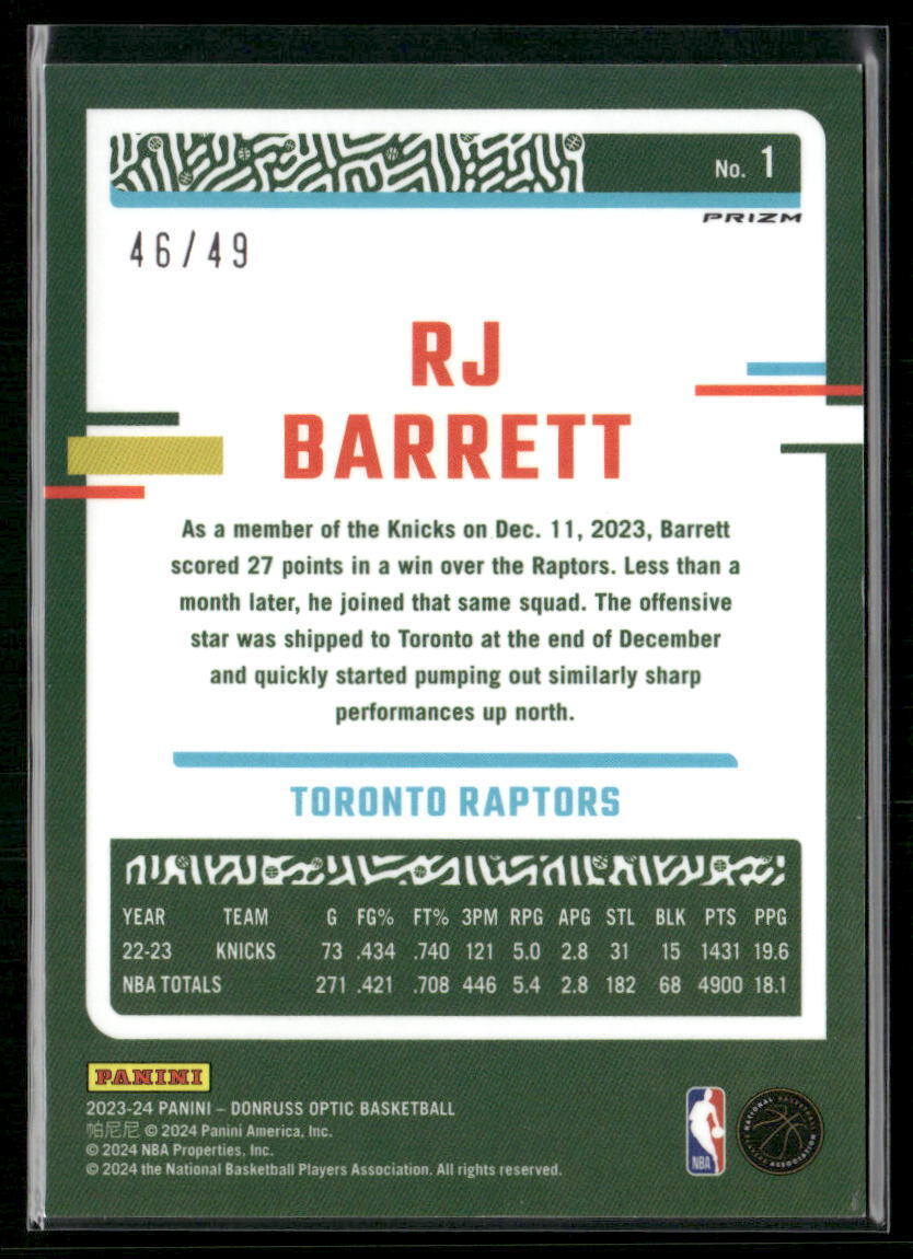 2023-24 Donruss Optic #1 RJ Barrett Blue #/49