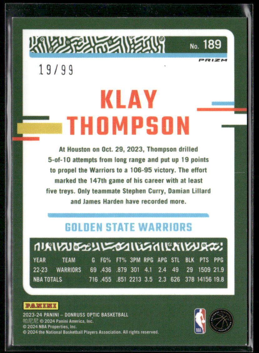 2023-24 Donruss Optic #189 Klay Thompson Fast Break Purple