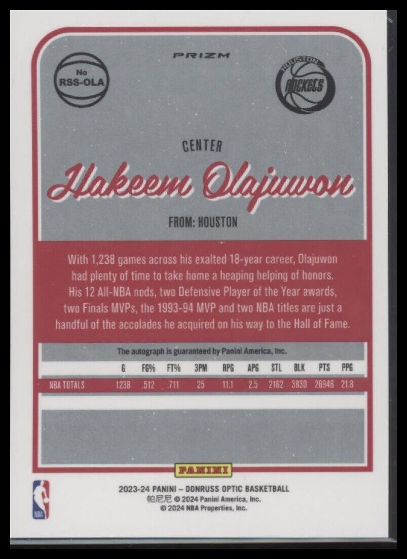 2023-24 Donruss Optic #RSS-OLA Hakeem Olajuwon Retro Series Signatures Choice