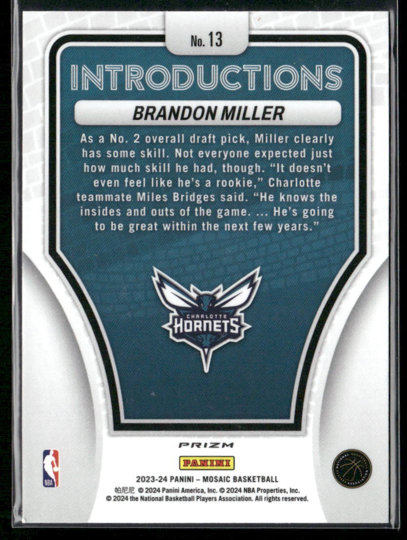 2023-24 Panini Mosaic #13 Brandon Miller Introductions Mosaic