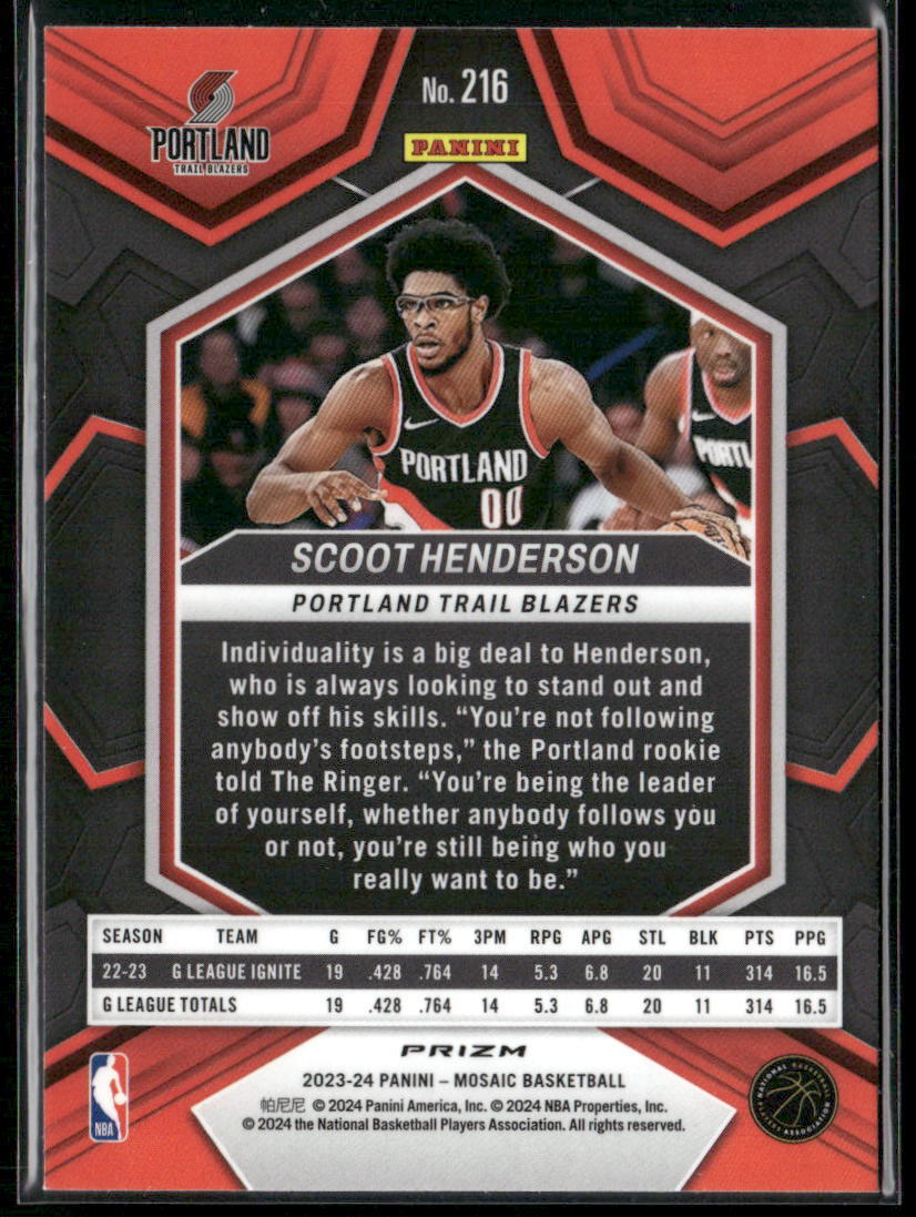 2023-24 Panini Mosaic #216 Scoot Henderson Red