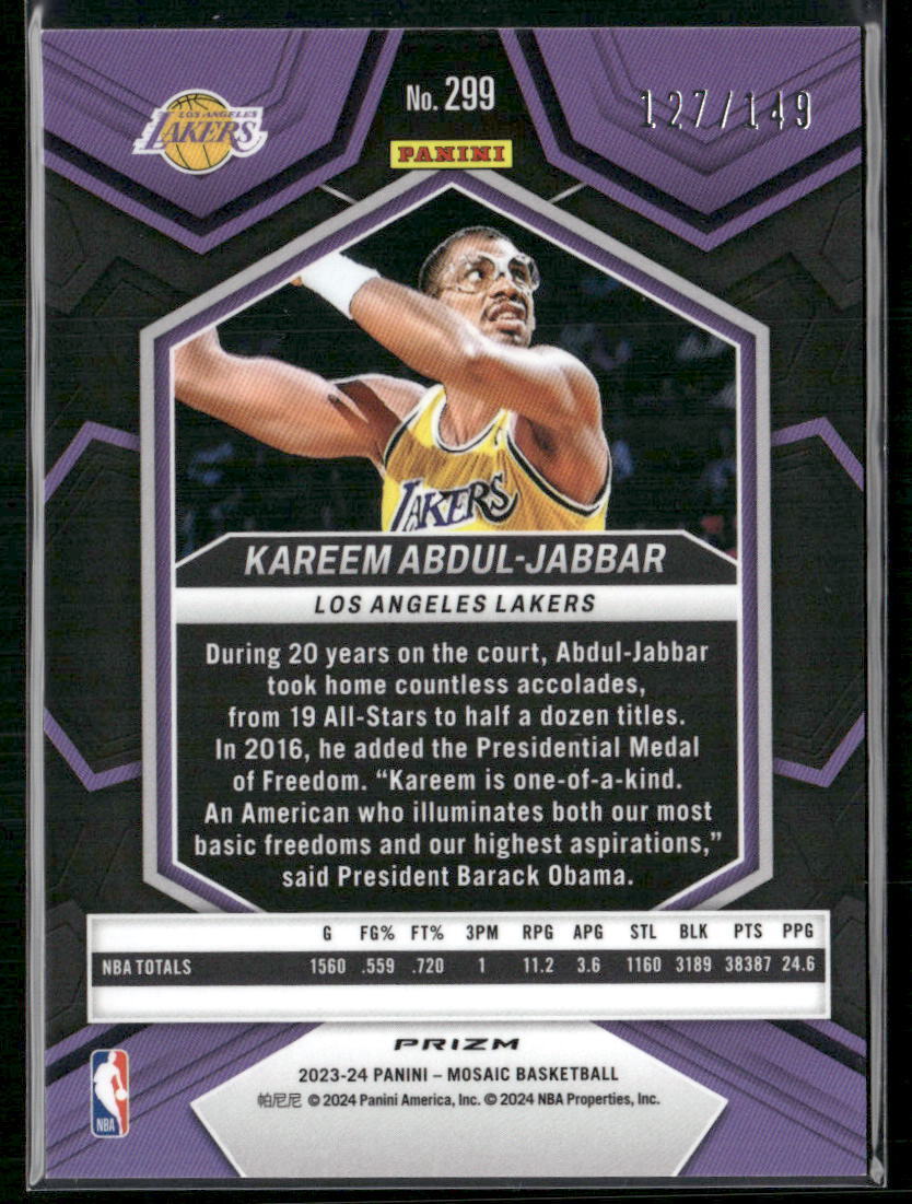 2023-24 Panini Mosaic #299 Kareem Abdul-Jabbar Pink