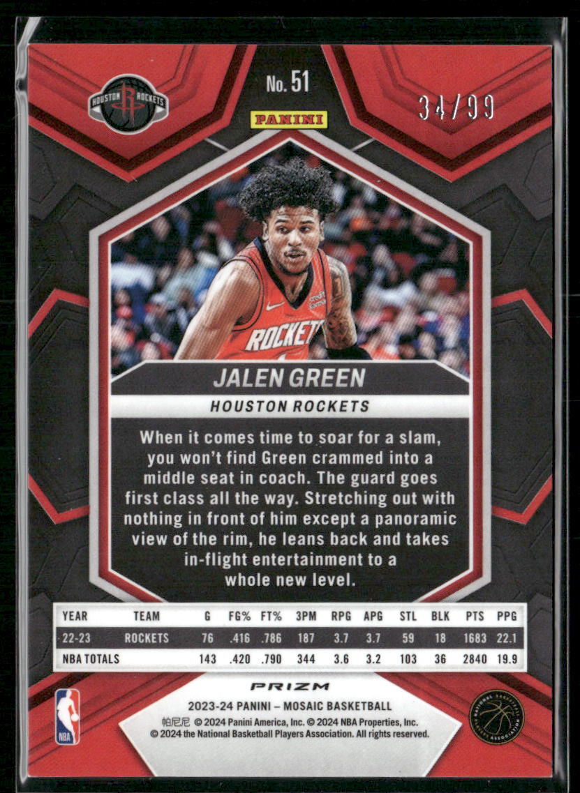 2023-24 Panini Mosaic #51 Jalen Green Purple #/99