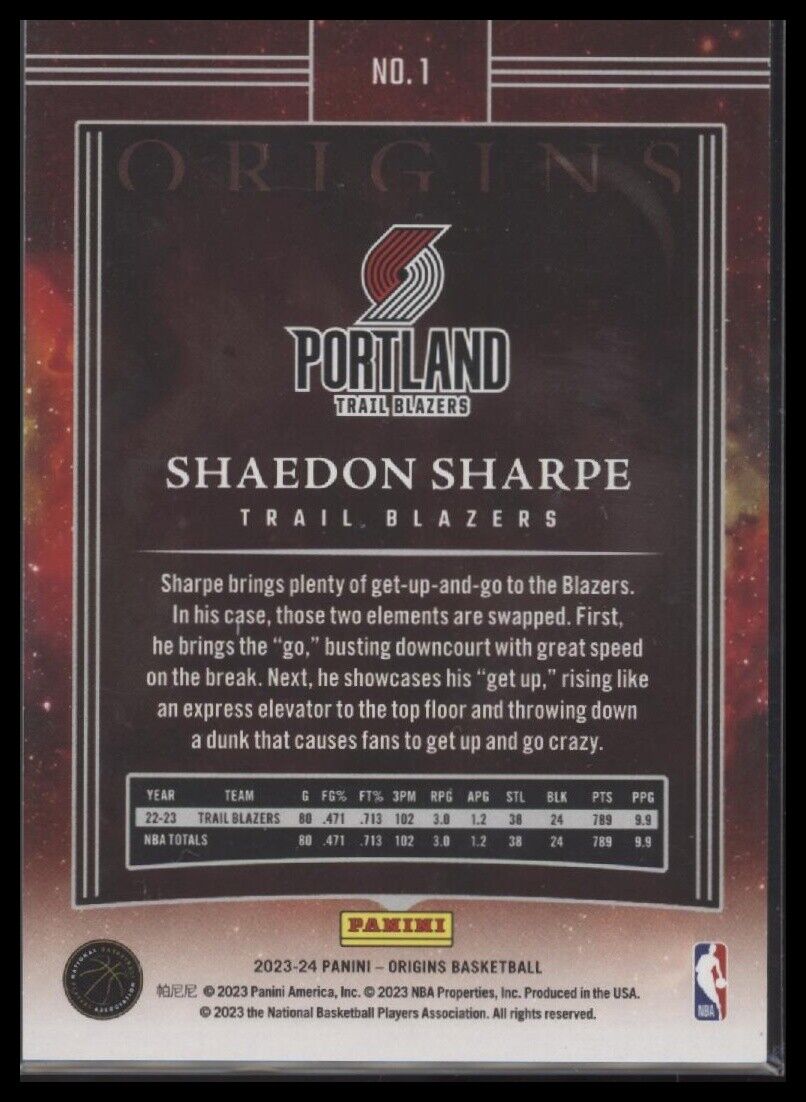 2023-24 Panini Origins #1 Shaedon Sharpe Turquoise