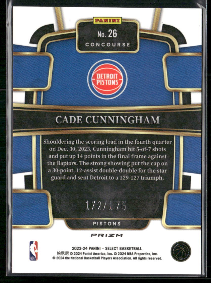 2023-24 Panini Select #26 Cade Cunningham Maroon Prizms