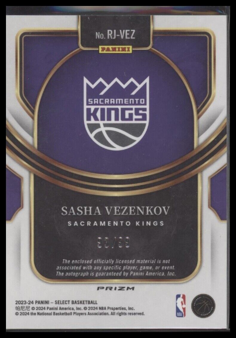 2023-24 Panini Select #RJ-VEZ Sasha Vezenkov Rookie Jersey Autographs Purple Prizms