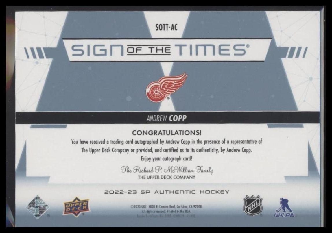 2023-24 SP Authentic #SOTT-AC Andrew Copp 2022-23 SP Authentic Update: Sign of the Times