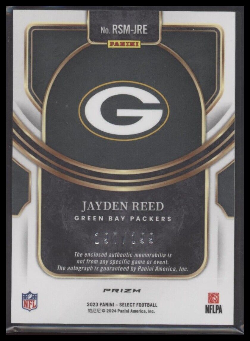 2023 Panini Select #RSM-JRE Jayden Reed Rookie Signature Memorabilia Prizm