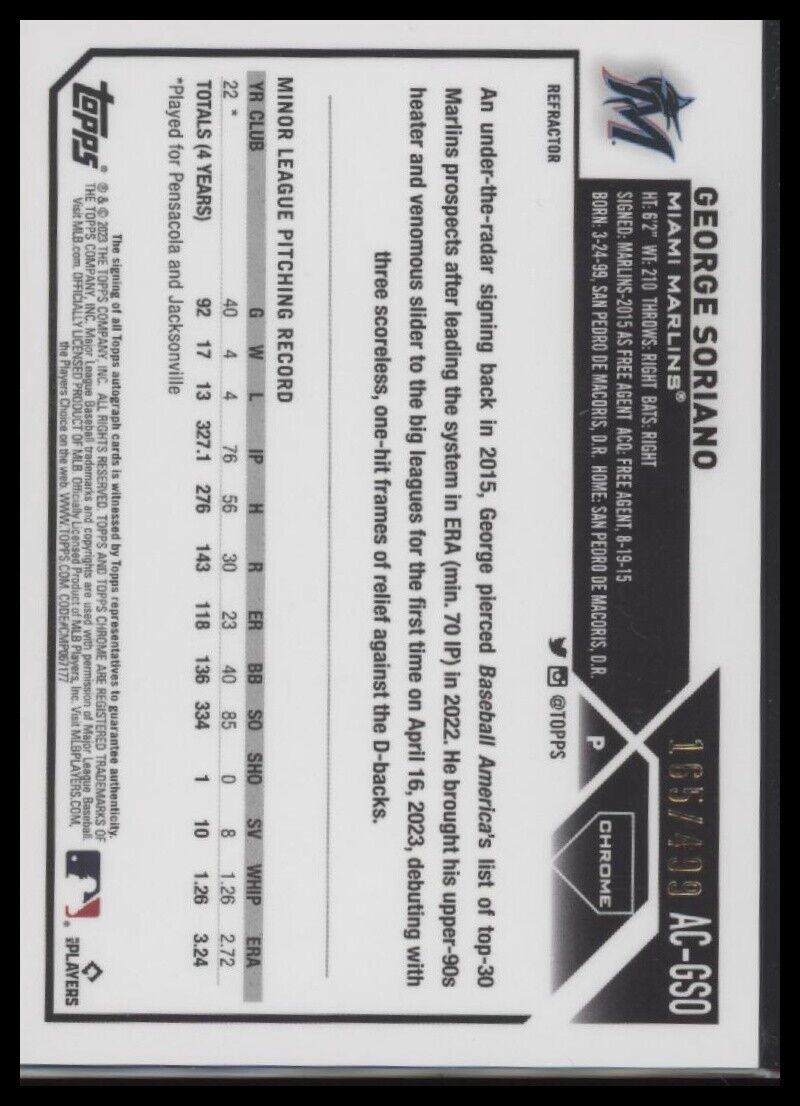 2023 Topps Chrome Update #AC-GSO George Soriano Autographs Refractor