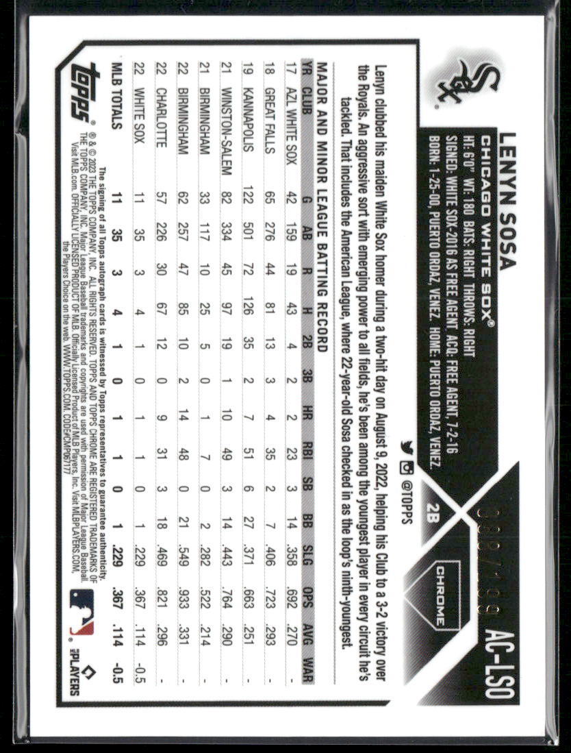 2023 Topps Chrome Update #AC-LSO Lenyn Sosa Autographs Aqua Wave
