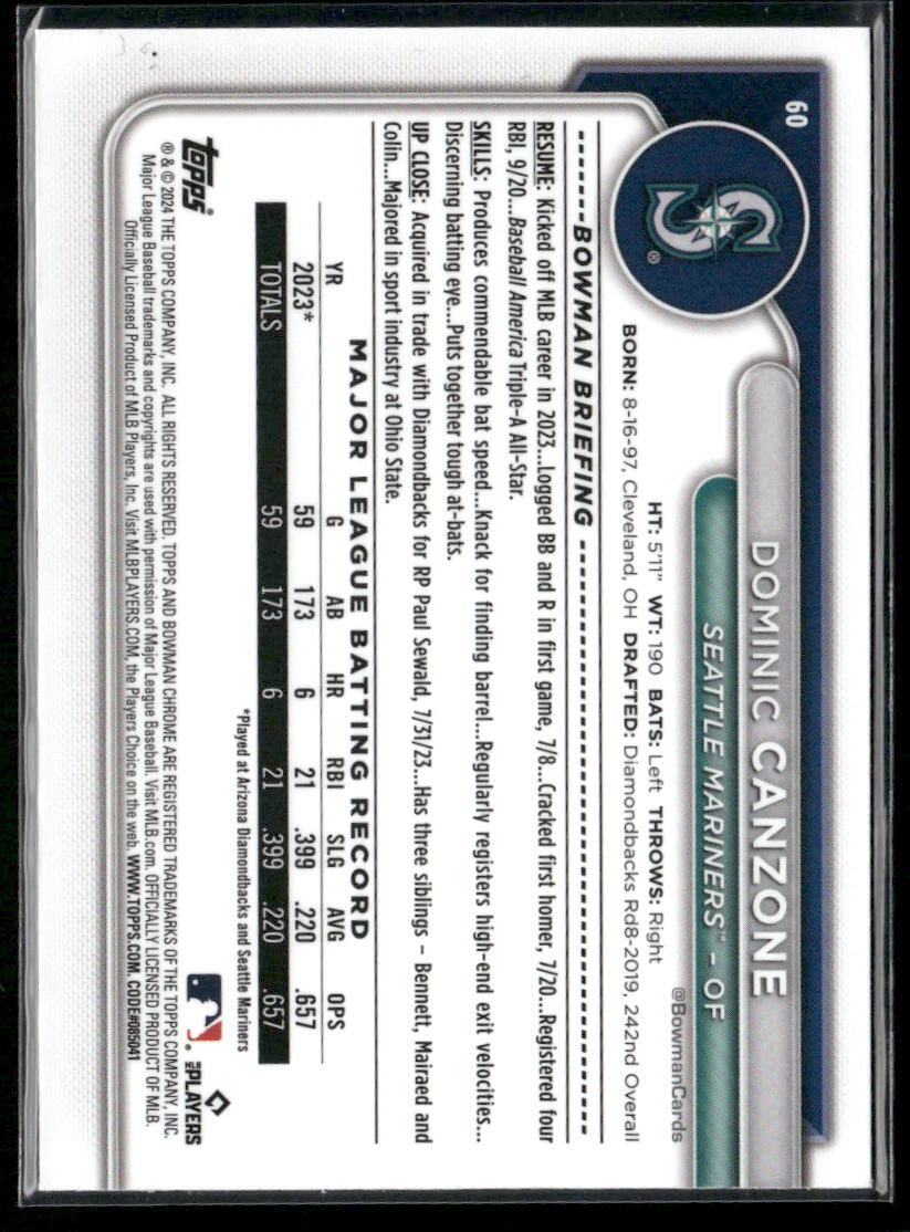 2024 Bowman Chrome #60 Dominic Canzone Wave Refractors