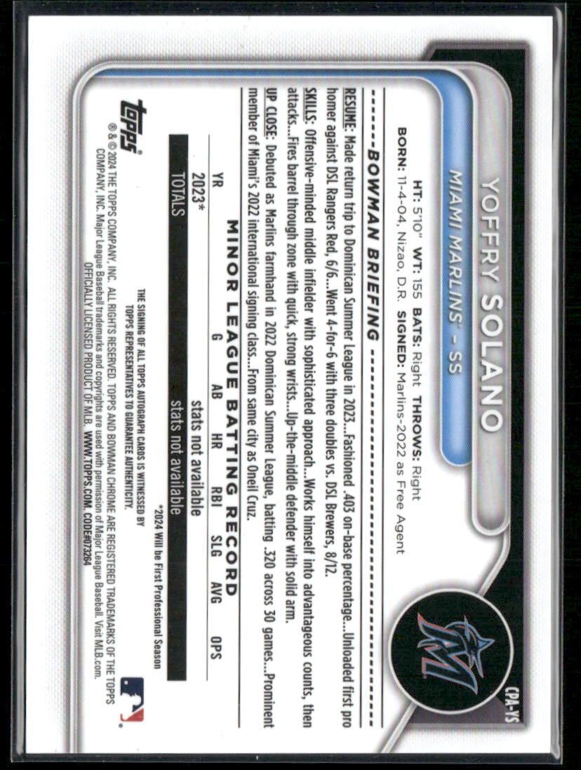 2024 Bowman Chrome #CPA-YS Yoffry Solano Prospects Autographs
