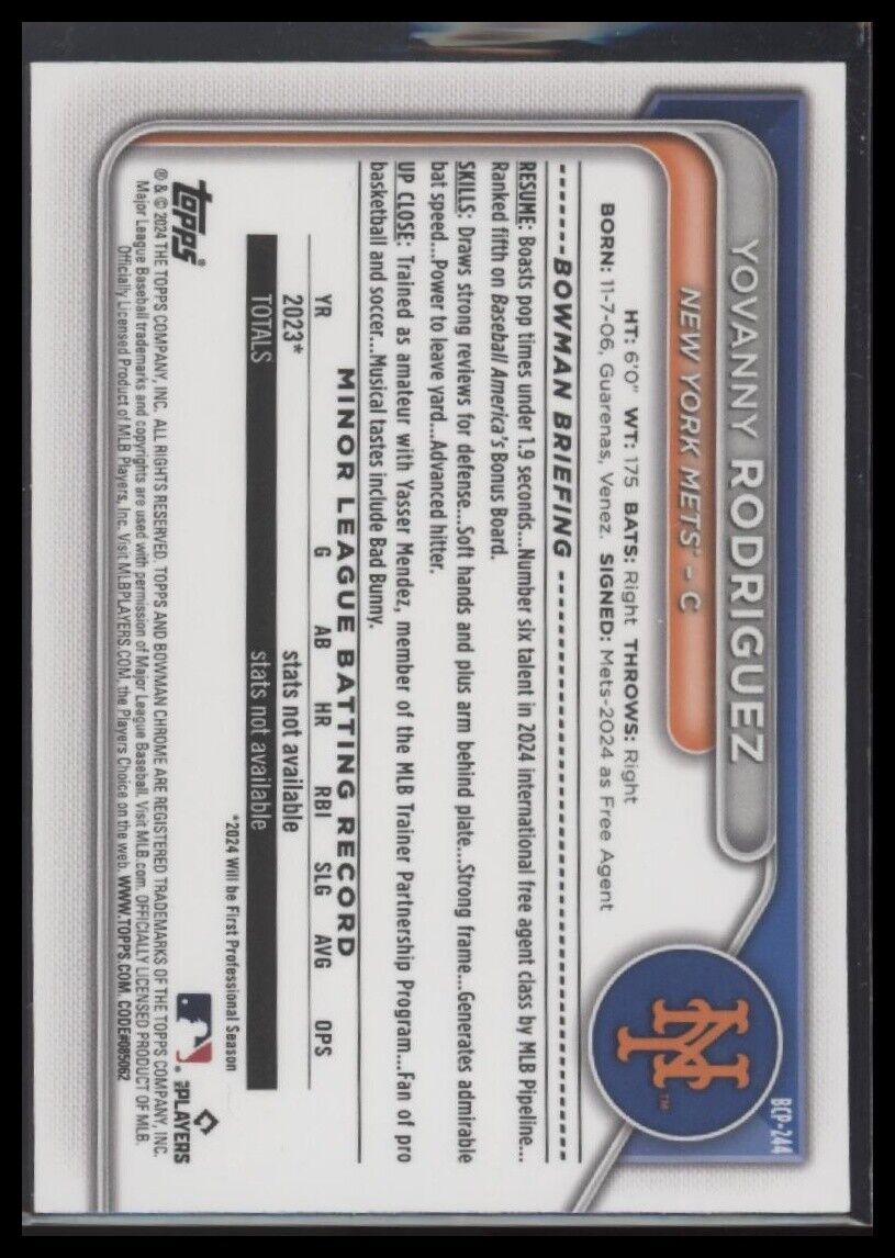 2024 Bowman Chrome #BCP-244 Yovanny Rodriguez Chrome Prospects Gold Refractor