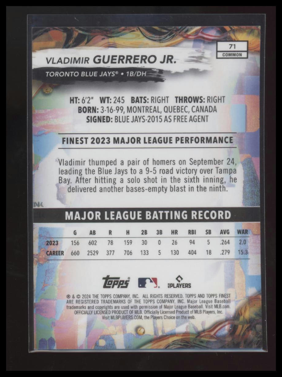 2024 Finest #71 Vladimir Guerrero Jr. Sky Blue Refractors