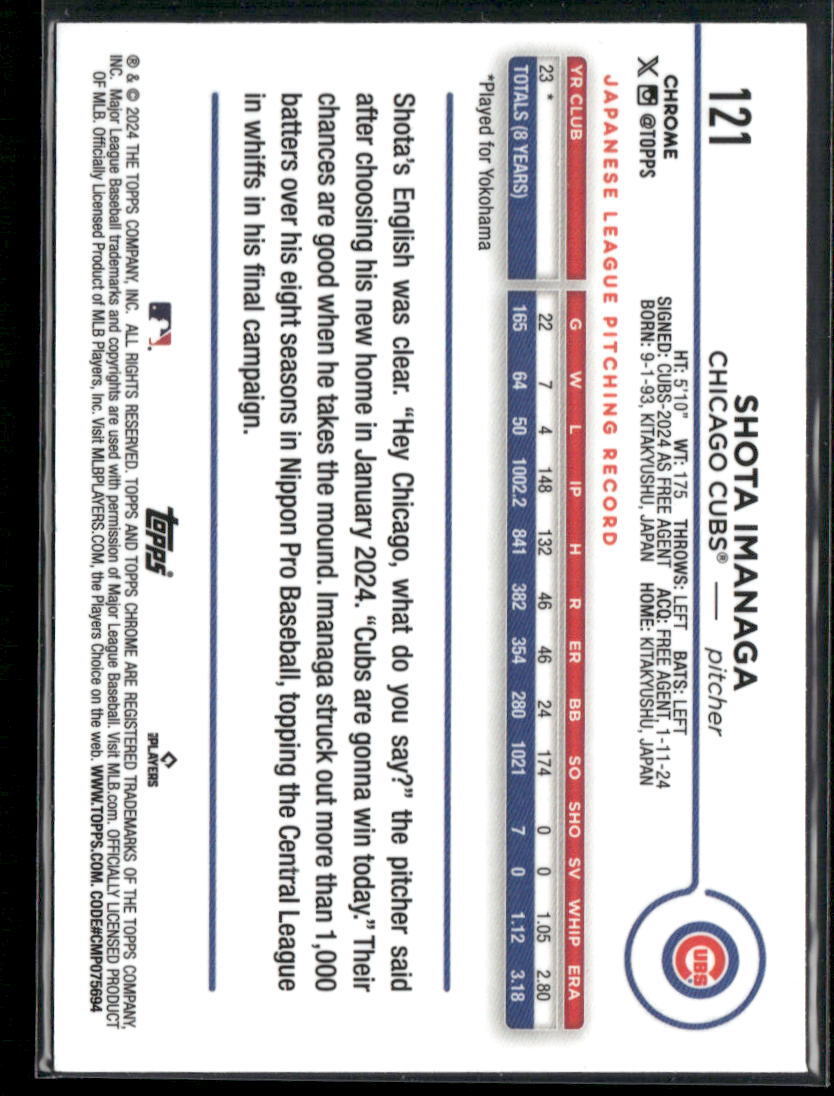 2024 Topps Chrome #121 Shota Imanaga Green Refractors