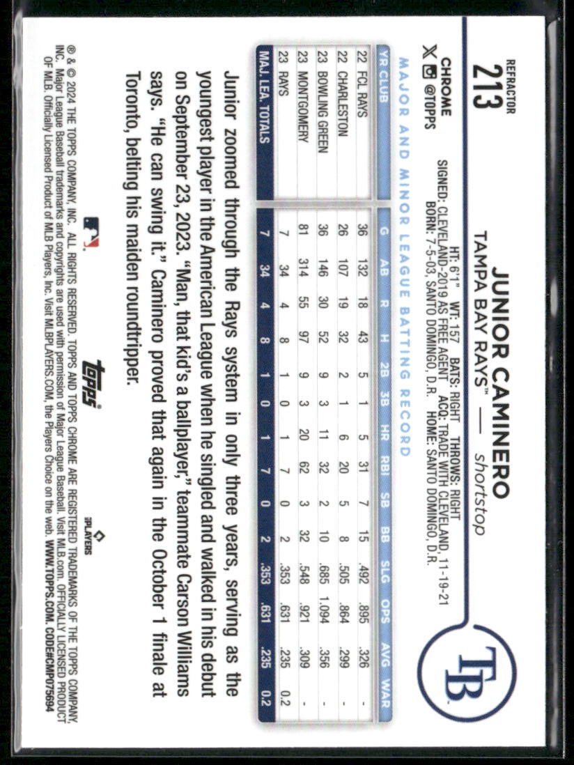 2024 Topps Chrome #213 Junior Caminero Refractors