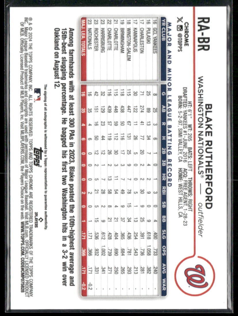 2024 Topps Chrome #RA-BR Blake Rutherford Rookie Autographs Purple Refractor