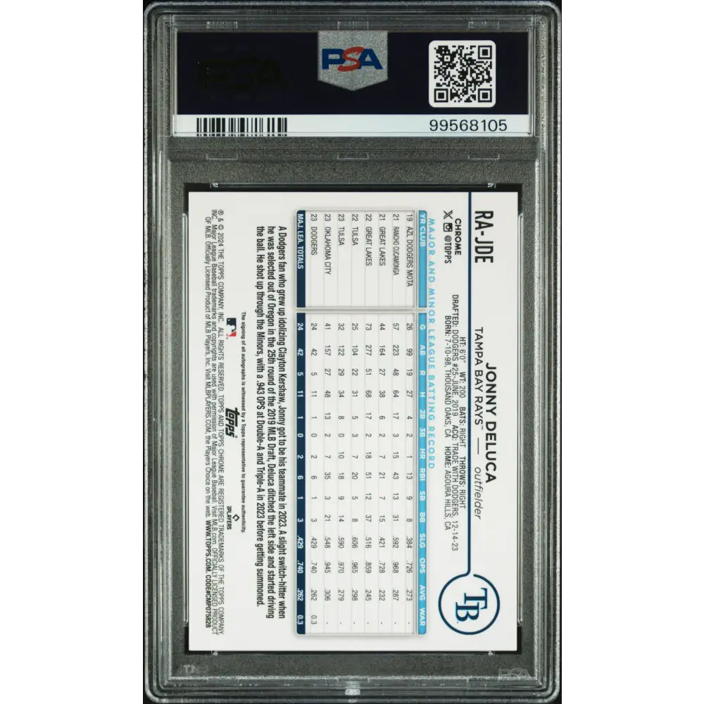 2024 Topps Chrome Rookie Auto Jonny Deluca Rookie Auto-Gold Wave-PSA 9