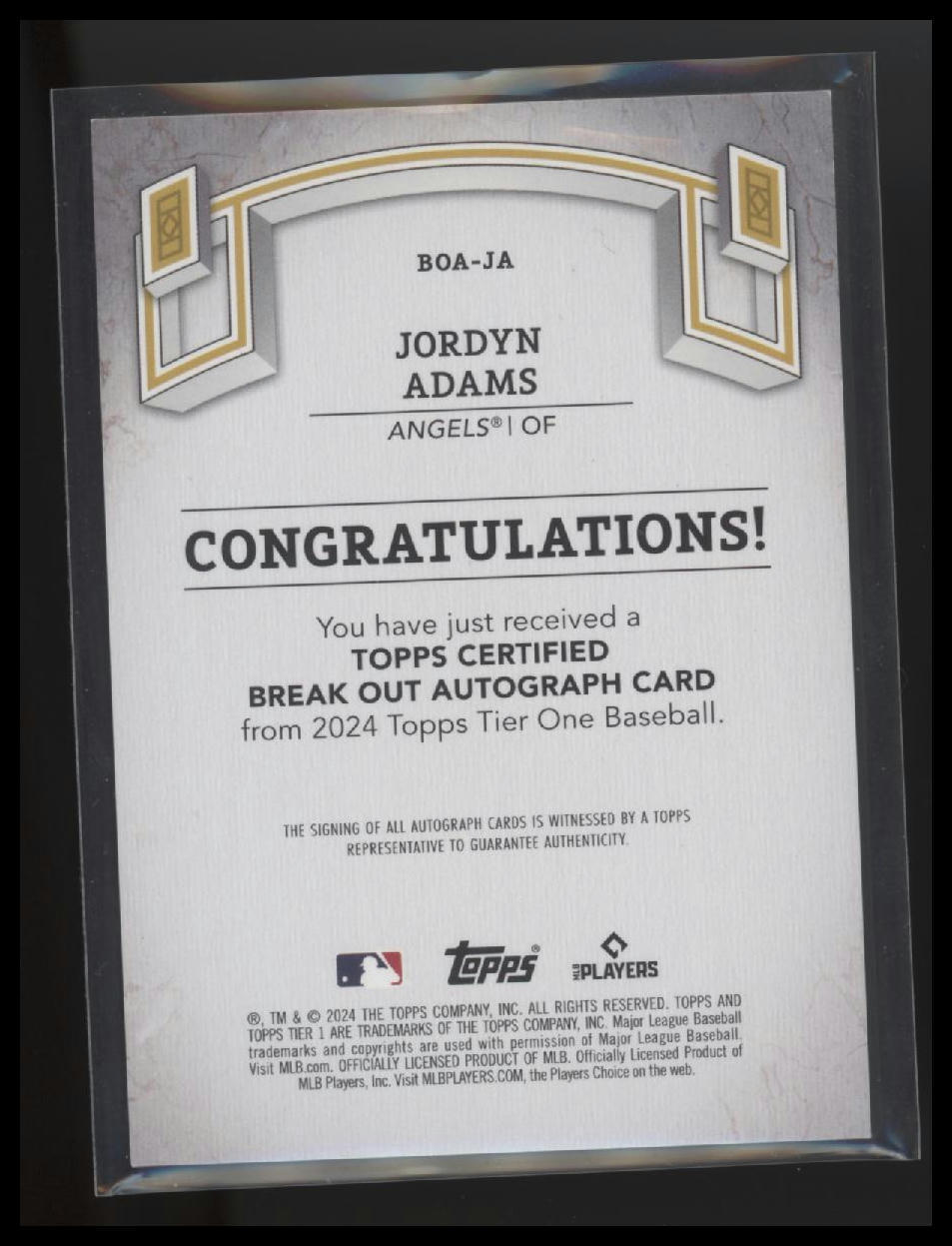 2024 Topps Tier One Jordyn Adams Blue Foil Break Out RC Rookie Auto Angels