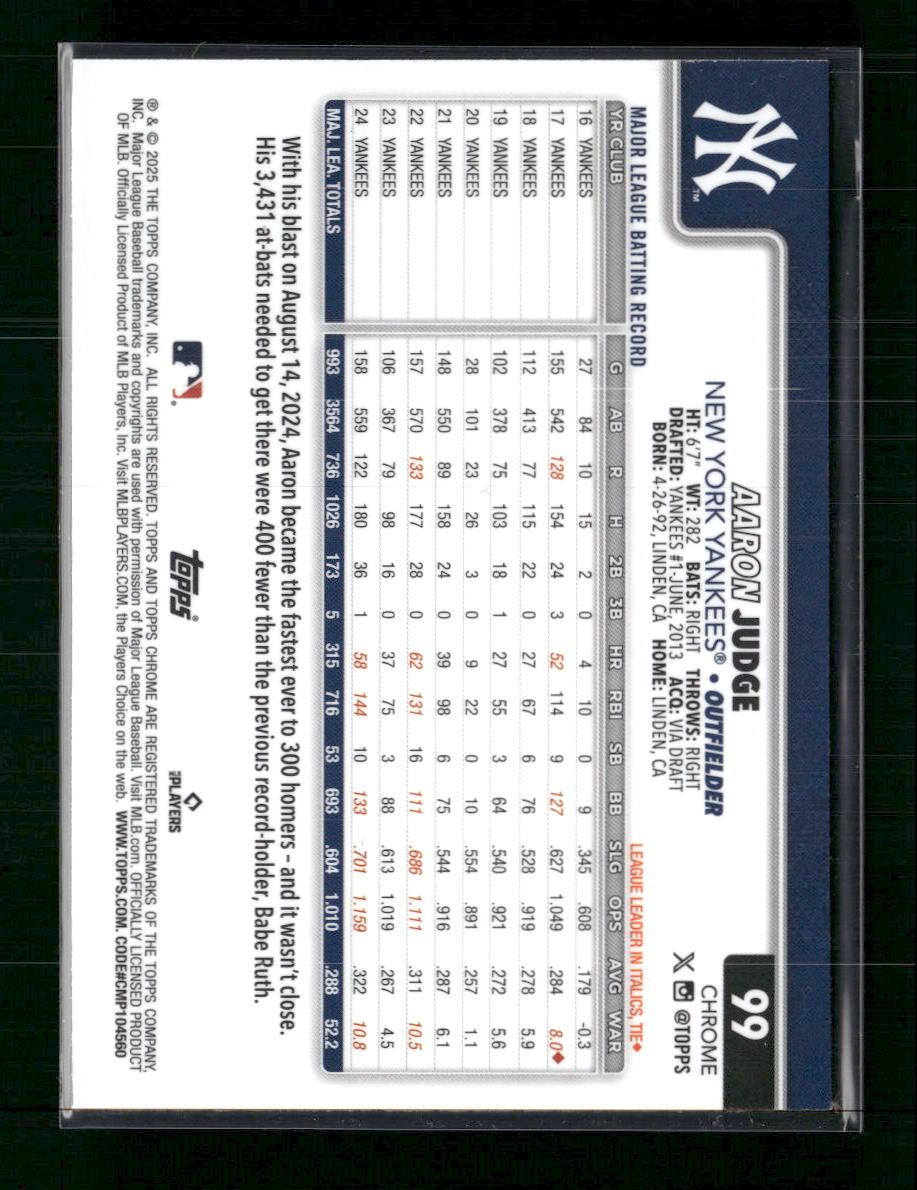 Aaron Judge 2025 Topps Chrome #99 Image Variation Short Print Refractor SP