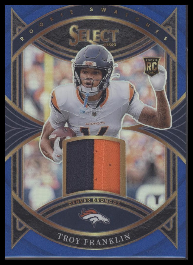 Troy Franklin 2024 Panini Select #RS-TFN Rookie Swatches Blue Prizm #/35